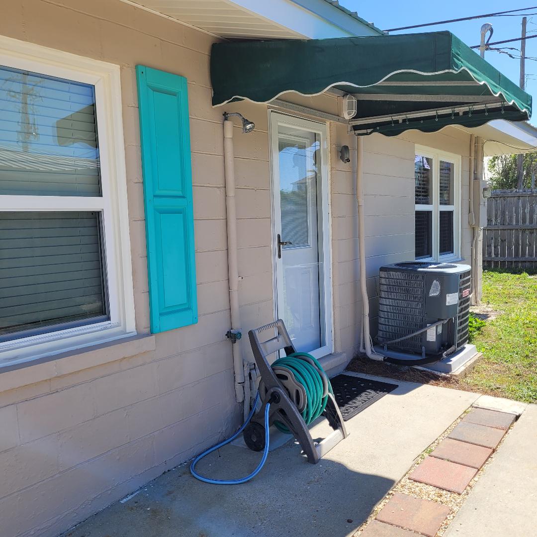 - Privacy fence. Full size gas grill, outdoor shower.